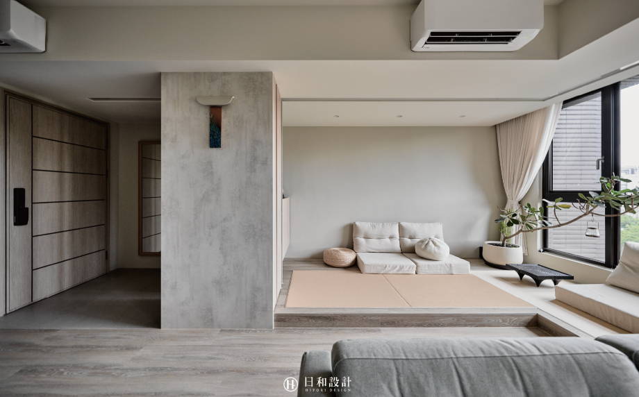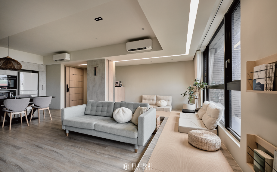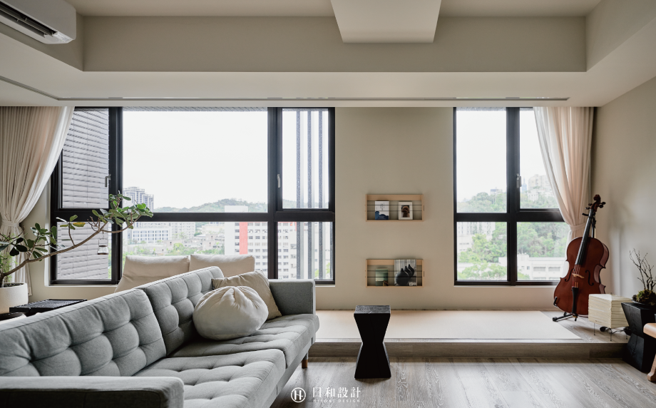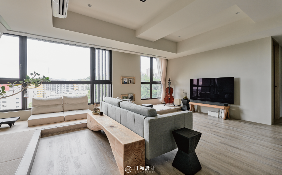 環繞於客廳一側與後方的,正是靠窗而設的榻榻米空間——這個家的靜心之地。