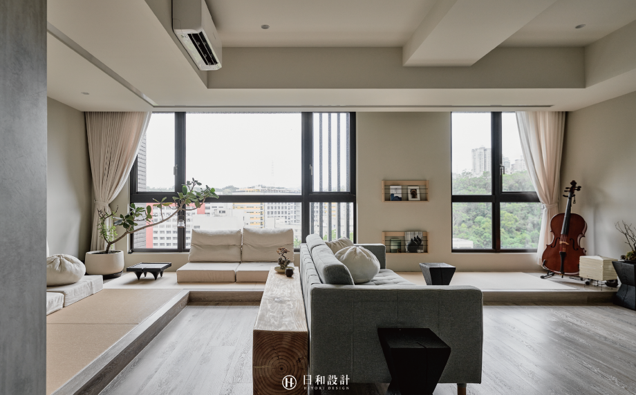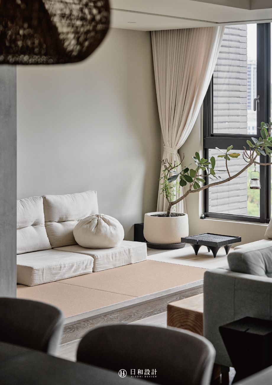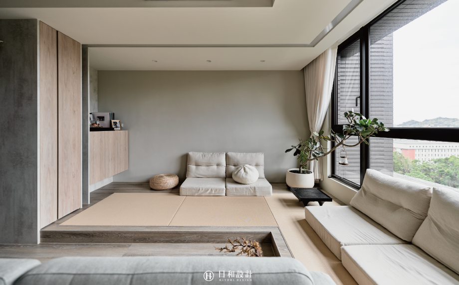 榻榻米的低矮設計,讓視線與窗外風景自然相融,光影的變幻與四季的更迭在此一覽無遺,